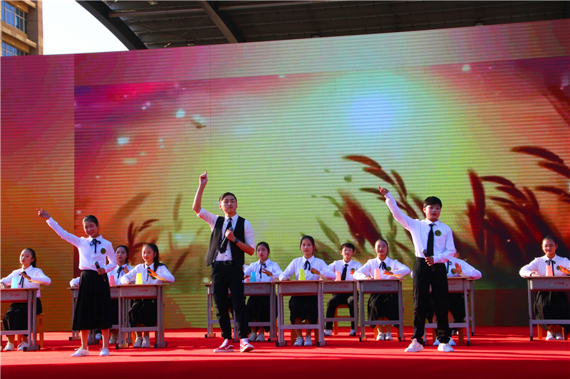 在文艺汇演前,首先,六安九中执行校长李艳总结回顾了学校建校45年的发展历程以及2019年取得的辉煌成绩。2019年,学校教师获省市级奖达15人,学生获奖达500人次。她说,2019年是六安九中建校45周年,45年里六安九中完成了从厂办学校到公办学校到骨干学校,再到市级示范学校的四大跨越。实现了从偏居一隅,狭窄的几间平房,到高标准、现代化的校园,再到今天的九中教育集团的飞跃发展。她希望全体九中人要进一步发扬顽强拼搏、不怕苦不怕累的精神,牢记使命、勇于担当、再创辉煌。