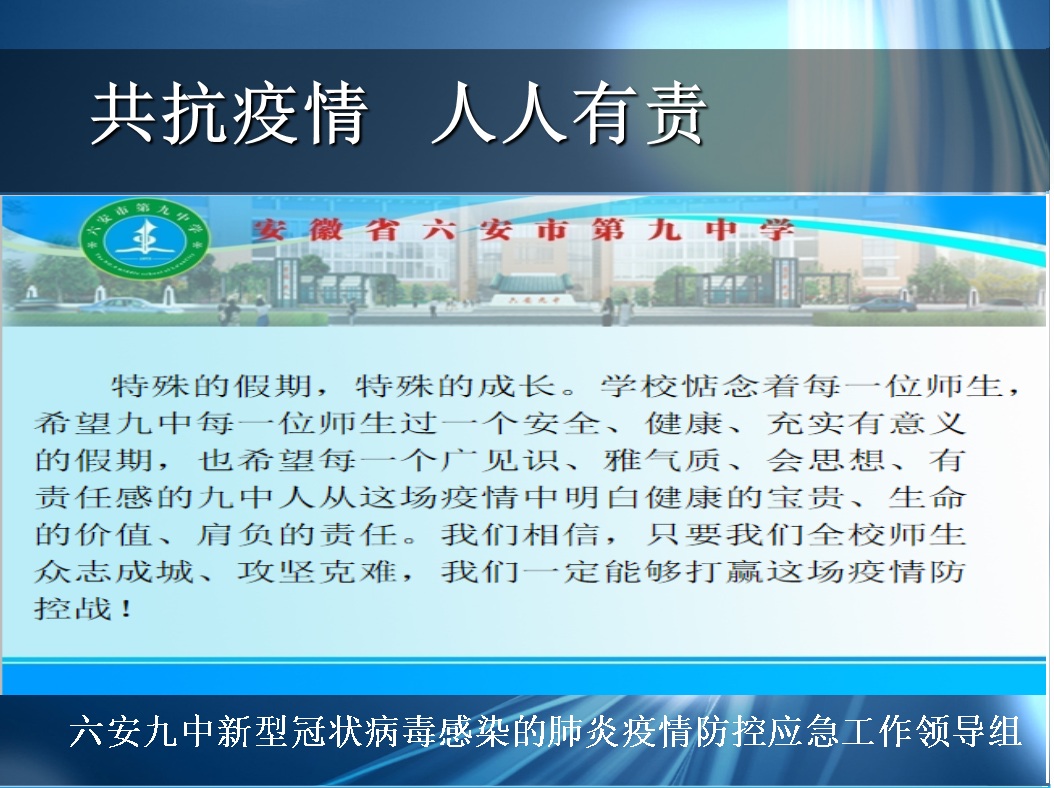 六安九中新型冠状病毒感染的肺炎防控知识手册