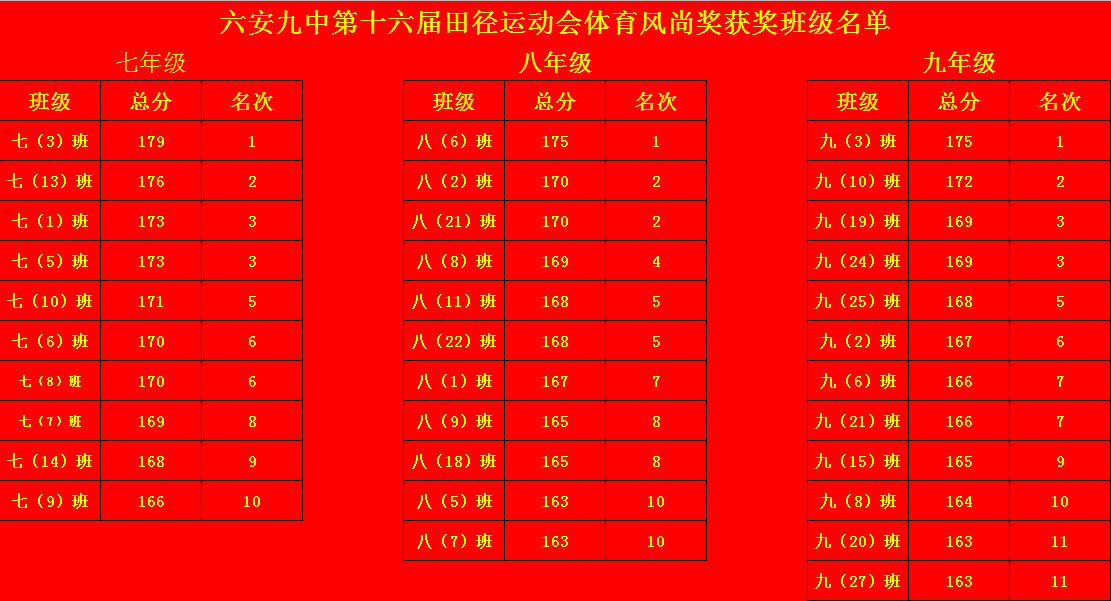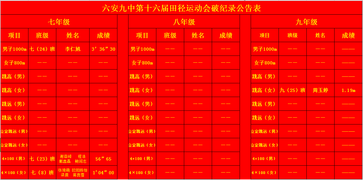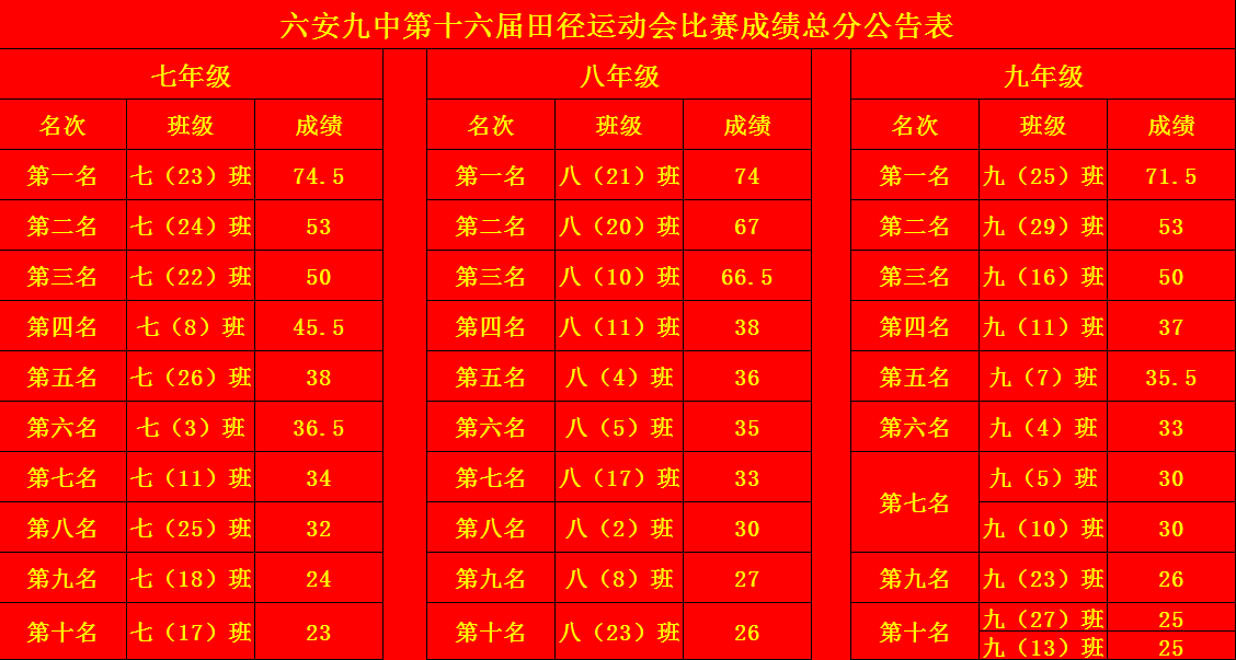 虽然本届运动会已经完美落幕了,但这两天半的时间里发生的一幕幕动人的场景却让我们难以忘怀。我们忘不了开幕式上那英姿飒爽、特色鲜明的各班方阵;我们更忘不了那跑道上一声声枪响后的奋勇争先、那跳高场地内跨越横杆的飞身一跃、那跳远场地中振奋人心的腾空而起、那实心球球场地里划出的一道道美丽的弧线。我们还忘不了全体裁判员公正评判、一丝不苟的身影和全体工作人员细致用心、热情周到的服务;我们也忘不了非运动员同学呐喊助威、踊跃投稿、打扫卫生的一幕幕动人的画面。所有的这一切,集中展示了六安九中广大师生积极向上、团结奋进的精神风貌,也充分凸显了本届运动会“弘扬体育精神、勇担圆梦重任”的主题。