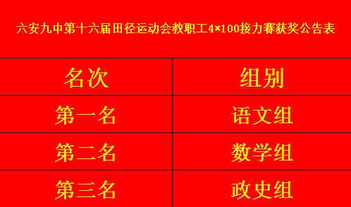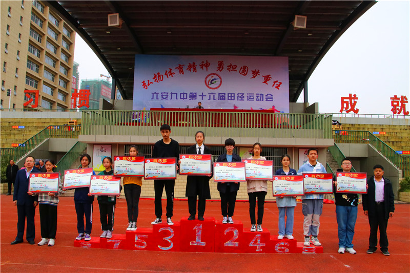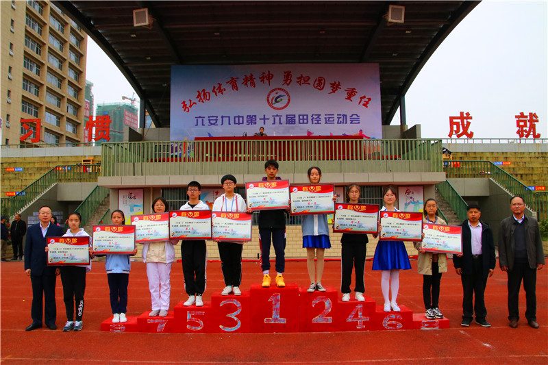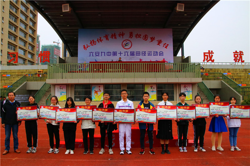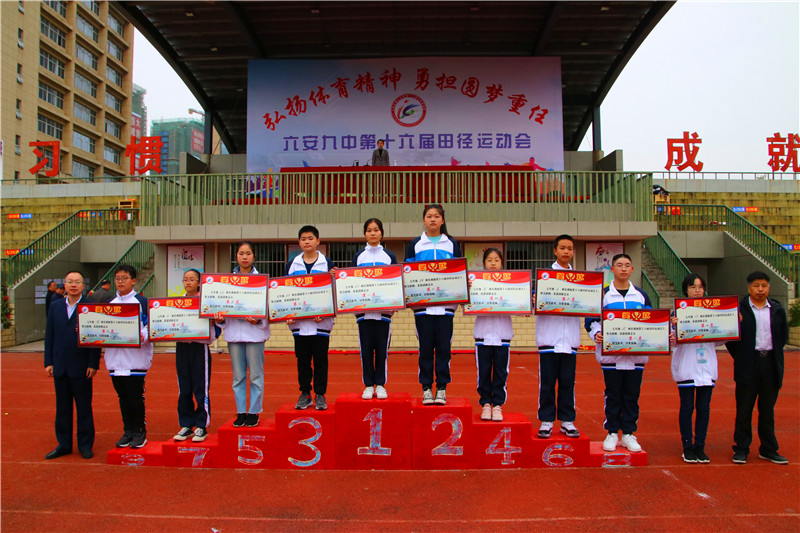 风好正是扬帆时,不待扬鞭自奋蹄。一阵阵和煦的秋风,吹干了师生们脸上的汗水,但吹不动九中人团结奋斗、顽强拼搏的执着,吹不走九中人超越自我、舍我其谁的豪情,更吹不灭全体九中人的为校争光、为国添彩的热情火焰。六安九中人将以本届运动会为新的起点,自觉把在体育运动中所表现出来的坚强意志、拼搏精神和竞争意识践行到今后的学习、工作和生活中去,团结一心,乘势而上,创造九中新的辉煌,为实现中华民族伟大复兴的中国梦而不懈奋斗。(文:查军柱 图:杨传广 李应)