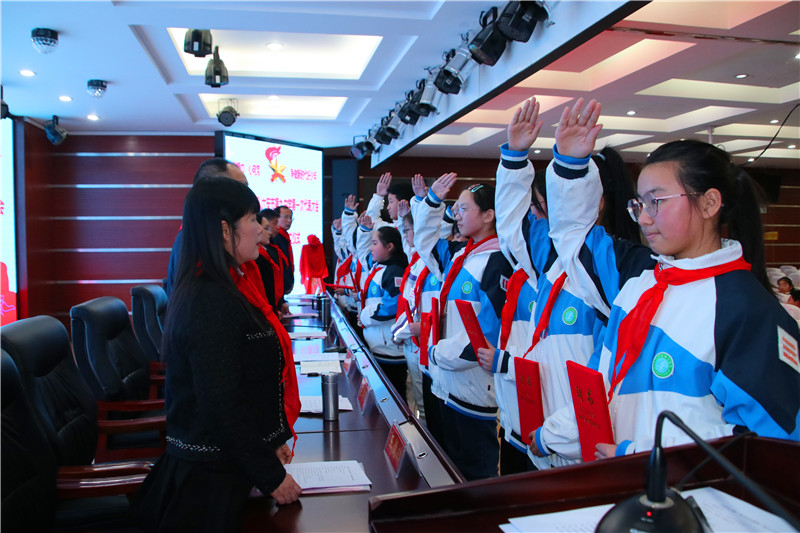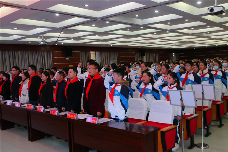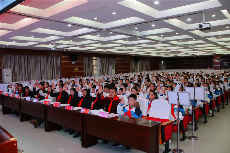 为了学习贯彻党的十九大精神,第八次全国少代会精神,习近平总书记关于少年儿童和少先队工作系列重要讲话和指导精神,落实《少先队改革方案》中的要求,11月26日下午,六安九中隆重举行第一次少代会暨第一届少工委揭牌仪式。裕安区委教育工委副书记李胜,六安九中执行校长李艳,副校长王铮、霍杰、霍朝晖,德育处主任李开军,团委书记刘伦胜,少先大队辅导员王德玲出席大会。各中队辅导员、家长代表、教师代表、少先队员代表200余人参加大会。