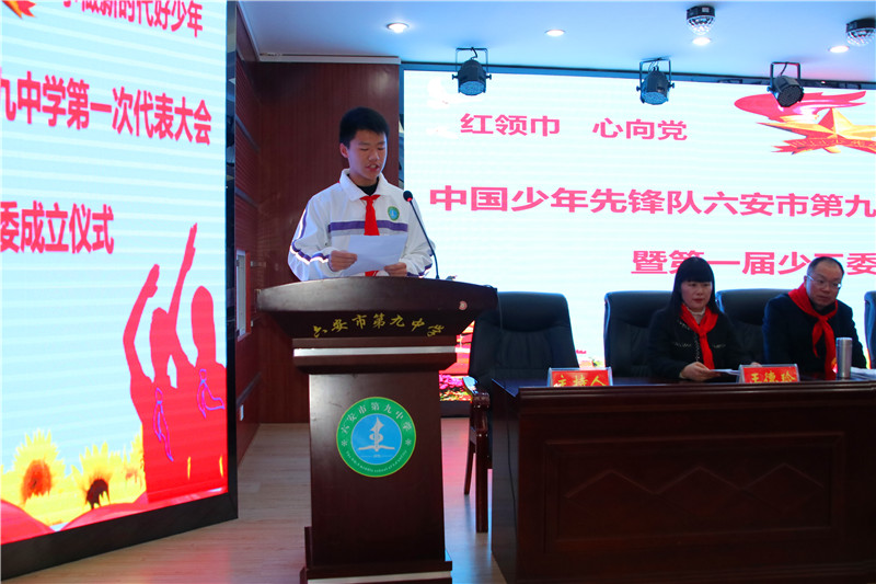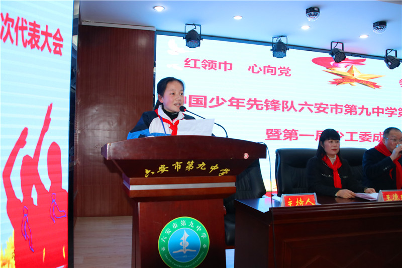 大会议程严格按照《少先队改革方案》要求进行,听取和审议通过了校少先大队辅导员王德玲所做的中国少年先锋队六安市第九中学少先大队工作报告。
