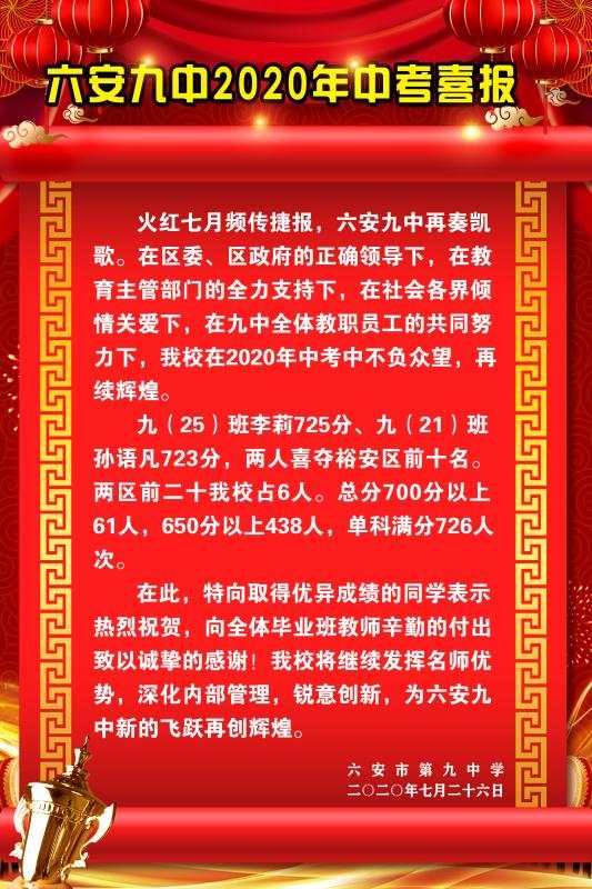 六安九中2020年中考喜报