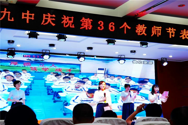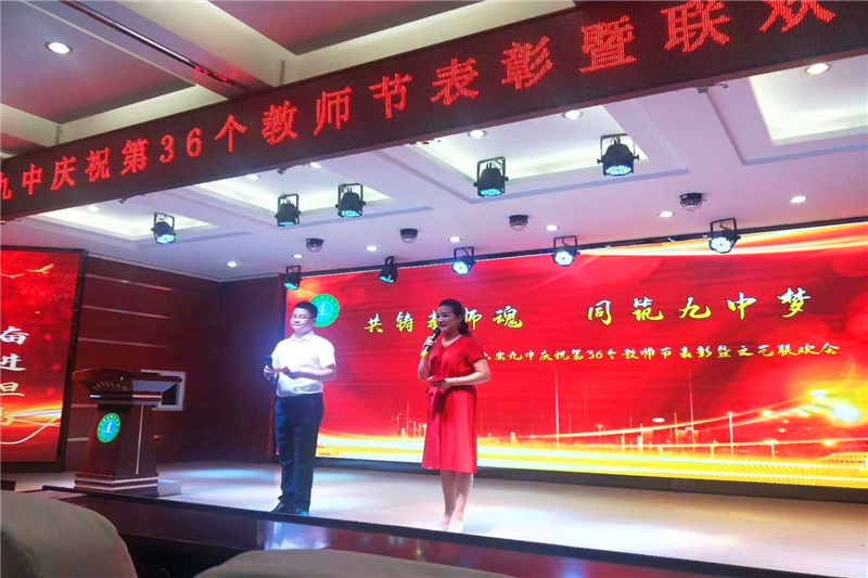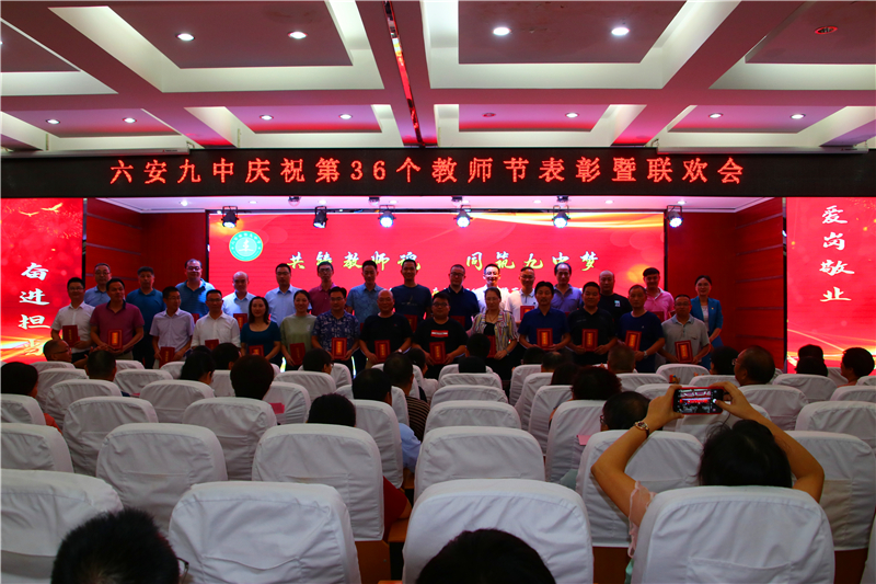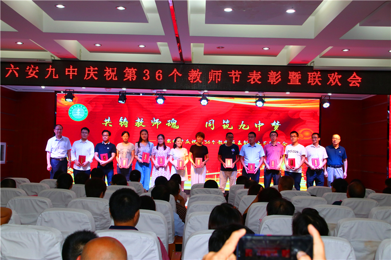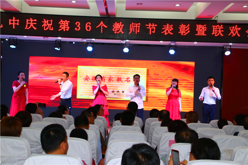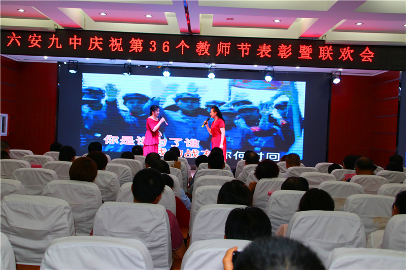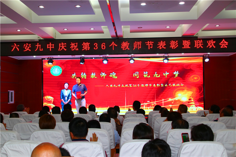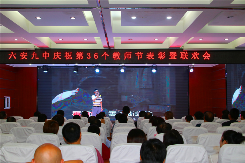 九月的天空分外明艳,九中的校园生机无限。为热烈庆祝第36个教师节,进一步总结表彰先进,弘扬尊师重教的良好风尚,推动师德师风建设常态化,展示学校教师良好的精神风貌,努力实现学校内涵发展的新跨越。9月10日晚上,六安九中举行庆祝第36个教师节表彰暨文艺联欢会。