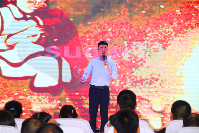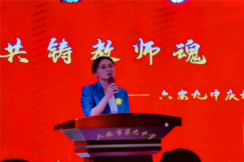 活动伊始,六安九中执行校长李艳为本次活动致辞。致辞中,李艳校长向辛勤工作的老师致以节日的问候,回顾了六安九中的发展历程,阐释了美丽的“九中梦”——九中未来的发展,就是要成为要成为一所学生向往、教师幸福的百年名校。致辞中,李校长还对全体教师提出了殷切的期望。她希望,老师们要把师德作为第一标准、教师作为第一身份、育人作为第一要务、爱生作为第一责任;她希望,各位老师牢记教师身份,静下心来教书,潜下心来育人,关爱学生成长。铸好师之魂,共筑九中梦。