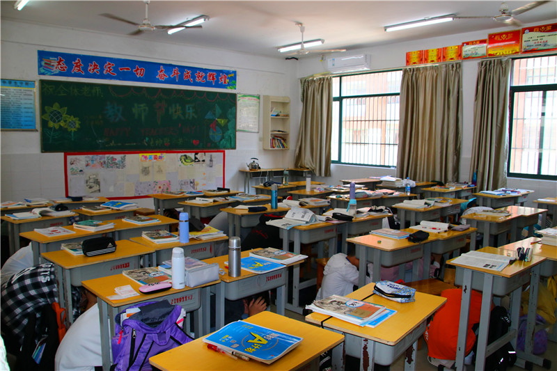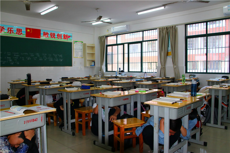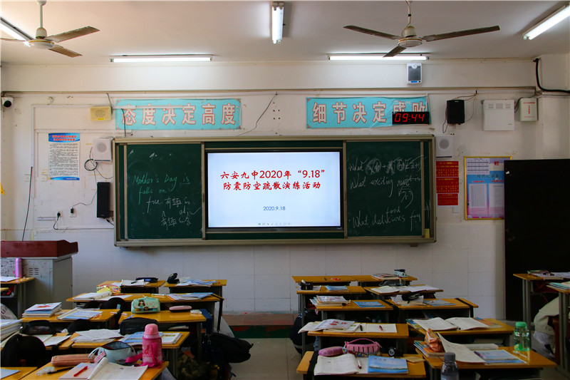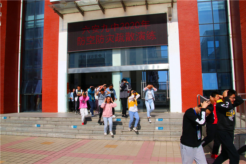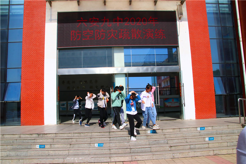 上午9点17分,学校发出防震演练信号,并通过广播通知:六安九中2020年“九·一八”防空、防灾应急疏散演练开始,请大家紧急避险。各班教师配合广播提示指挥学生迅速抱头、闭眼、躲在各自的课桌下,蜷曲身体,尽可能保护自身安全。
