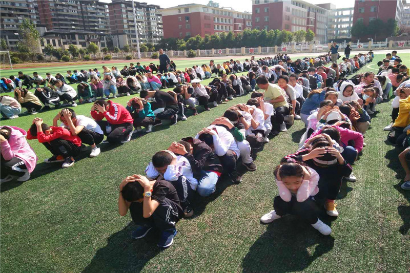 此时,工作人员按分工已经到达指定位置,防止出现踩踏等意外情况。先期到达疏散场地的班级,由班主任组织好本班队伍并清点人数,上报演练总指挥。此次疏散演练共设三个场地,分别是:学校东门小广场、篮球场及足球场。在5分钟内,全体师生安全到达疏散场地。在听到解除警报的广播后,各班学生安静有序地返回教室。