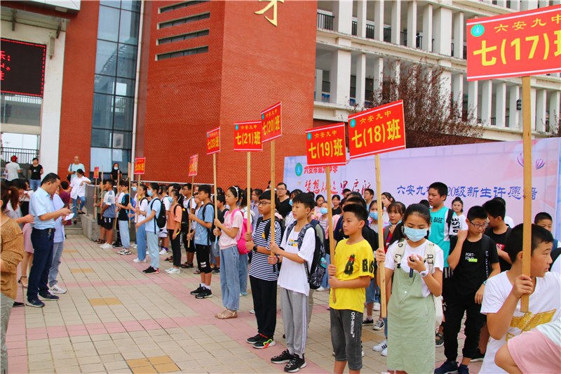 金秋九月,温润的柔风轻抚着一张张可爱的面庞,金色的阳光洒满了六安九中美丽的校园。9月1日早上,伴着嘹亮而充满青春激情的《九中校歌》,六安九中迎来了1800余名七年级新生。满怀憧憬的孩子与大美的九中相遇,从此,梦想将在这里启航,传奇将在这里书写。
