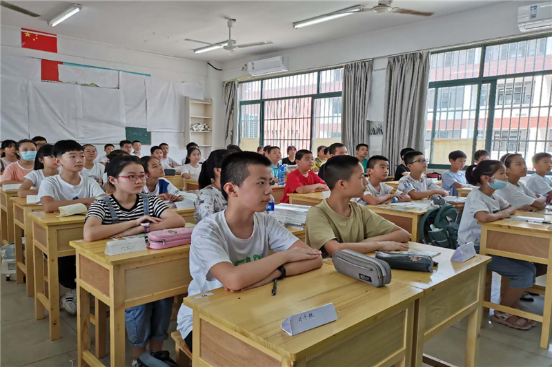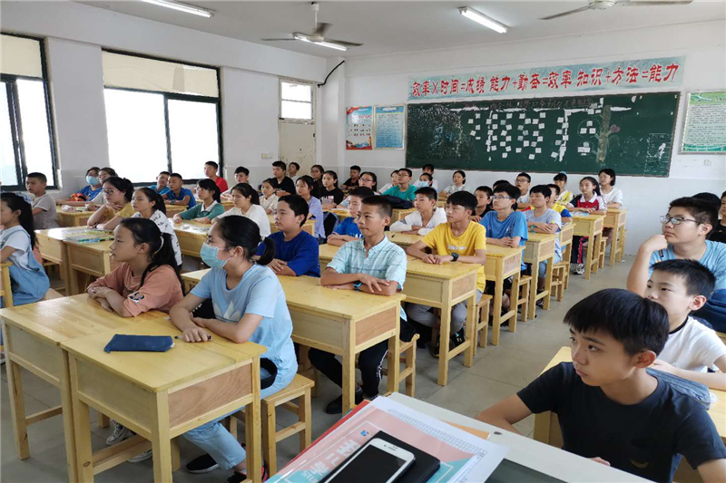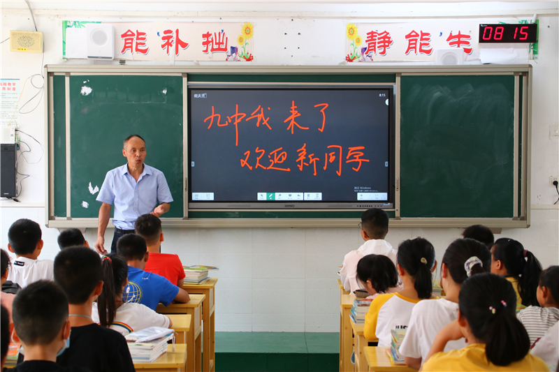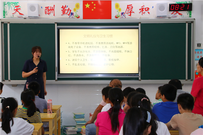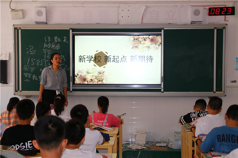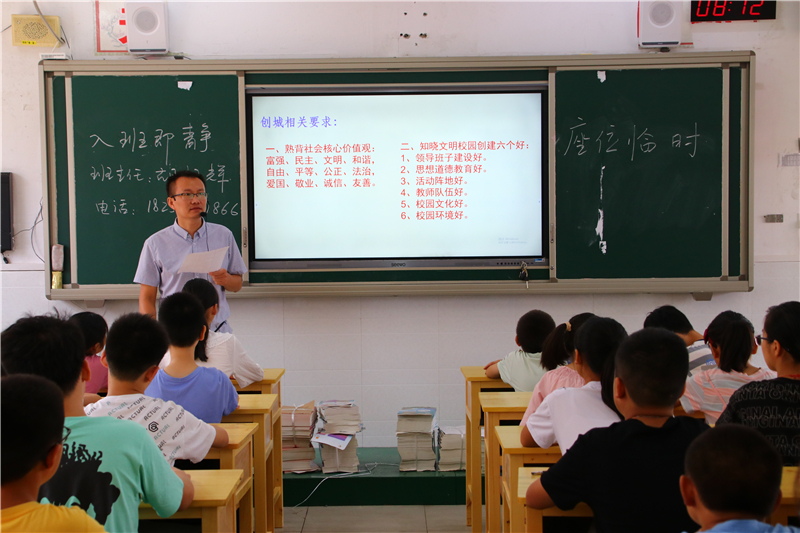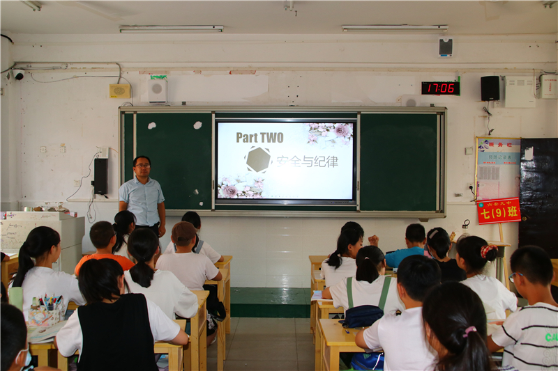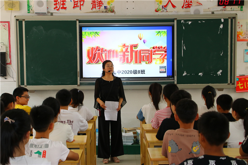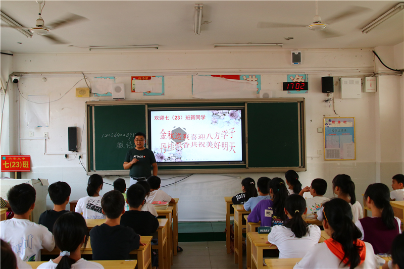 在学生们一番自我介绍后,各班的入学教育主题班会拉开了帷幕。学校德育处和团委,为七年级的“开学第一课”制作了主题鲜明、内容丰富、形式新颖的课件。各班主任结合学校实际、学生年龄特点和自己独特的教学模式,绘声绘声、充满激情地上起了精心准备的班会课。听了班主任对学校办学规模、办学理念、师资力量和教学成果的介绍,同学们对自己的新学校有了更深的了解,打心里爱上了这所美丽的学校。各班利用这次班会,对学生加强纪律和安全教育,让学生知道了如何学会自律、懂得了珍惜集体荣誉的必要性、明白了珍爱生命的重要性。在文明礼仪教育环节中,班主任告诉新同学们如何做一个讲文明、懂礼貌、守礼仪的新时代初中生。各班还通过展示我校部分班级独具特色的班级文化布置,激发学生爱班、爱校的热情,一开学就增强了班级的凝聚力。入学教育的“重头戏”是学习态度和学习方法引导环节。对于这些刚步入初中的新生来说,若想尽快进入学习状态,一是要适应新的环境,二是要制定科学的目标和计划,三是要尽快找到适合自己的学习方法。班主任的谆谆教诲,深深地吸引着孩子们。孩子们的心里都明白,选择九中是正确的,这里将是自己实现梦想的地方。