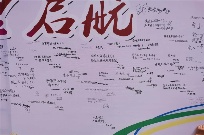 入学教育主题班会结束后,各班学生排着整齐的队伍来到学校精心打造的许愿墙前,写下了自己的希望与梦想。“脚踏实地地走好自己的路,以梦为马,不负韶华!”“一定要做一个更优秀的自己,加油!”“做一个快乐的自己。”“理想不是远的,只要你肯努力!”“无论走到哪里,不会忘了母校,更不会忘了祖国”……一行行娟秀整齐的文字,写出了孩子们对未来的期盼,透露着孩子们的实现理想的坚定,表达了新时代中学生的拼搏、执着和爱的情怀。