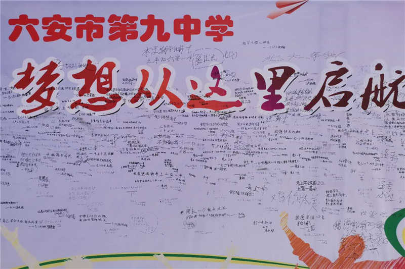 “登凭书山新胜景,扬展学海又一帆”。在九中,你将点燃希望,成就梦想。畅游学海,九中是你起航的港湾;翱翔蓝天,九中是你振翅的山巅;奔向未来,九中是你理想的摇篮。在这里,你们将用青春的激情和奋斗的汗水,绽放出光彩绚丽的人生之花。六安九中将秉承“培养合格的人、塑造特长的才”的教育理念,用务实引领学生求真,用智慧启迪学生求知,用真情陪伴学生成长。在这胜过春朝的秋日,我们成就了最美的相遇。大美九中,有你更美;优秀的你,因为九中,更加优秀。