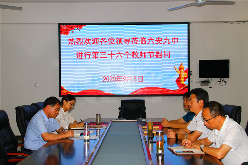 叠翠流金,天高云淡。9月8 日上午,裕安区委副书记、区长王仲孺,区政府办主任王思云,区教体局副局长郭杰一行莅临六安九中开展教师节慰问活动。
