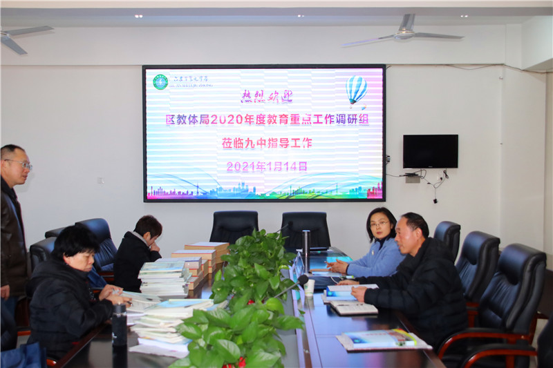 1月14日上午,区委教育工委委员、教体局副局长江兴国率领区教育重点工作调研组莅临六安九中开展调研工作。