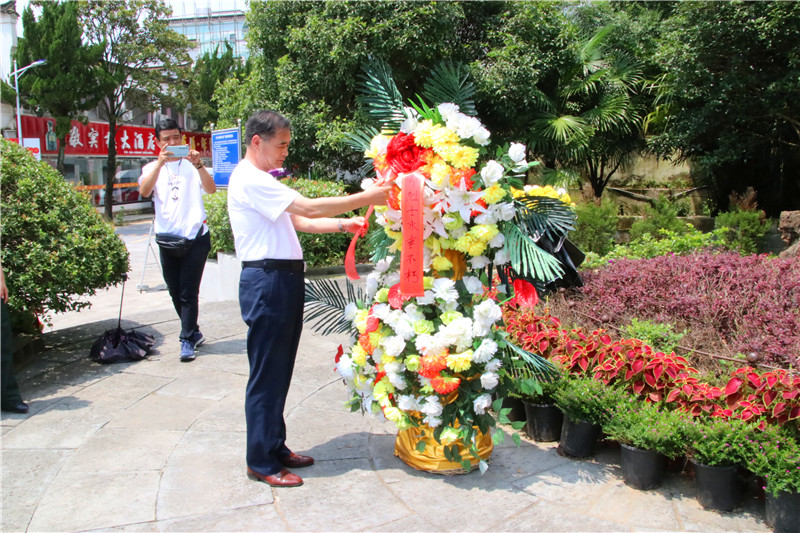 来到目的地,大家顾不上修整,都迫不及待地走进场馆,各项流程有条不紊地按计划进行着。首先,向烈士献花篮。两位党员教师抬着花篮向叶挺将军铜像缓缓走来,将花篮轻轻地摆放在铜像前。李胜书记神情庄重地整理着花篮绶带。全体党员静静肃立在叶挺将军铜像前,行默哀礼。
