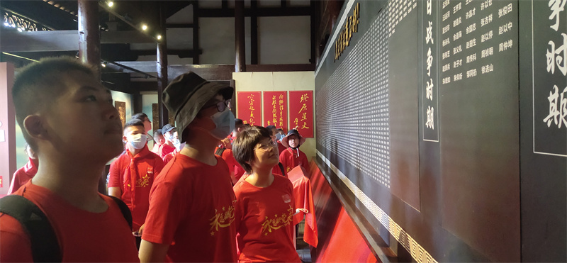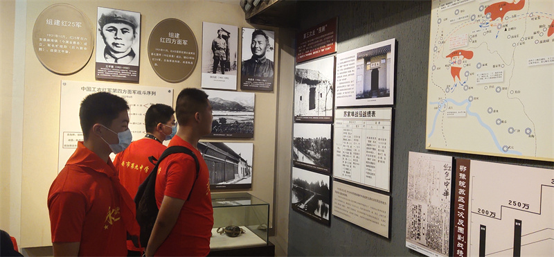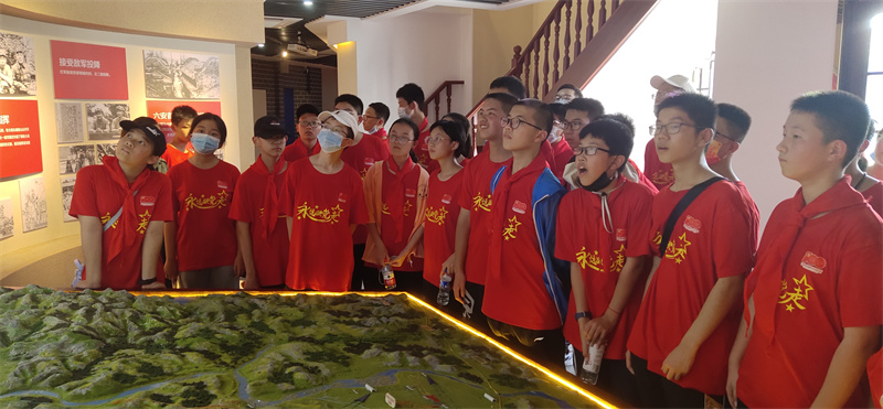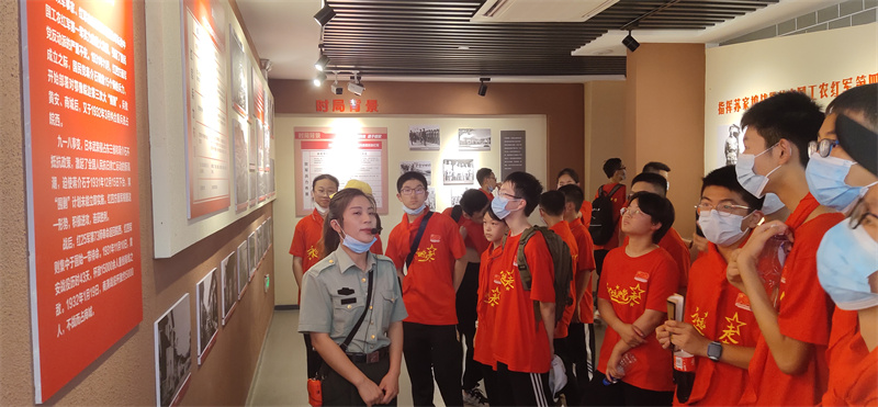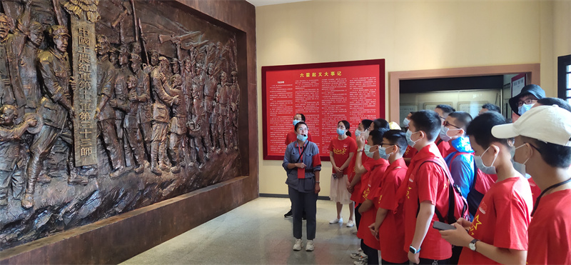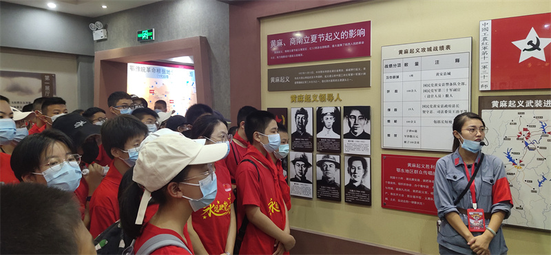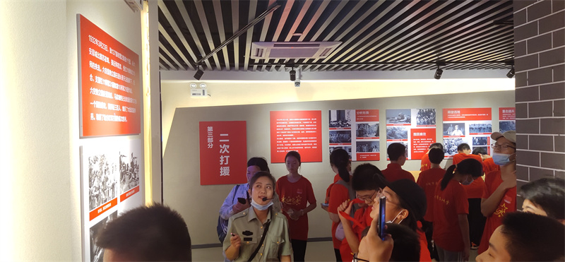 接着,大家参观了苏家埠烈士纪念馆,他们一边认真倾听讲解员的细致讲解,一边仔细端详展厅内的每一件展品、每一幅历史照片、每一段史实文字,重温了徐向前元帅浴血奋战的光辉事迹和鄂豫皖地区的红色革命史。“在我们脚下的这片热土上,曾发生过一次彪炳史册的著名战役——苏家埠48天大战。中国工农红军第四方面军在总指挥徐向前的率领下,采取‘围点打援’的战略战术,成功击退国民党的重兵‘围剿’,取得红军史上的空前大捷。”在讲解员的介绍下,大家了解到当年苏家埠战役详细经过,深切感受到此次战役的重要意义。一件件珍贵的旧实物、一幅幅历史老照片、一个个鲜活的再现场景,让同学们在视觉上、心灵上感知那段波澜壮阔的革命历史。
