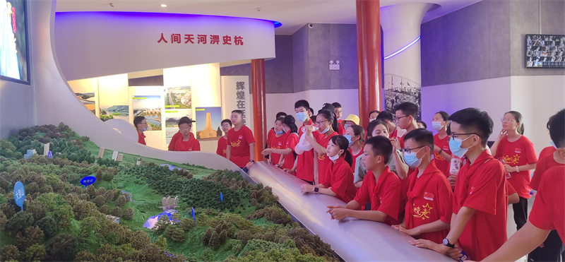 随后,同学们登上了思源楼,参观了淠史杭工程展览馆,观看历史图片、实物、视频和场景,聆听着讲解员的解说,进一步加深了对老区精神、淠史杭精神的领会,增添了对家乡的自豪感。