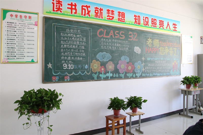 走进教室,一幅幅色彩艳丽的黑板报展示了孩子们对老师的感恩和祝福。