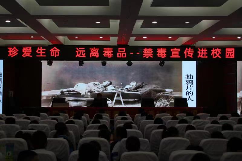 讲座中的禁毒视频,展示了吸毒的危害,呈现了吸毒者的亲身经历以及受到的法律处罚。生动形象的事例,把吸毒人员的可悲下场活生生地展现在学生面前,真实直观的视觉刺激,让同学们感受到了毒品的危害,接受了深刻的教育。