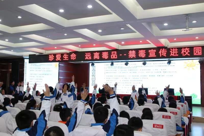 为了培养同学们知毒、识毒、防毒的意识,讲座还设置了禁毒知识竞答、宣读倡议书等环节。抢答、巧记等方式,使同学们熟记了禁毒知识,提高了识毒能力,学会了预防毒品的技能。