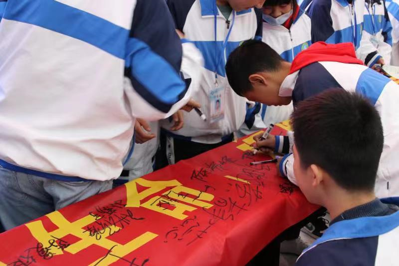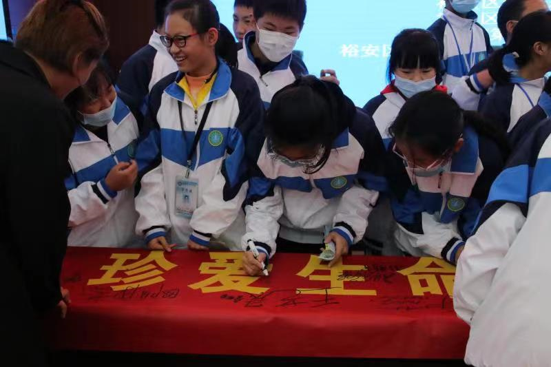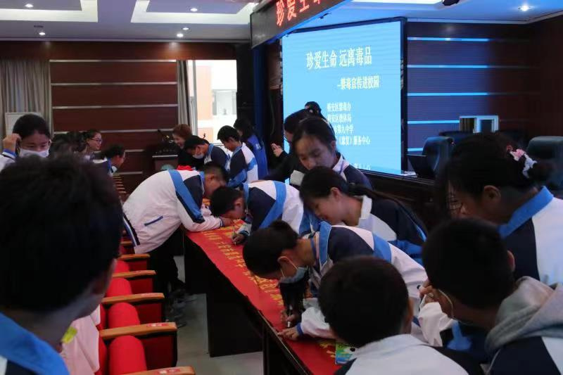 讲座结束后,同学们纷纷在宣传禁毒的横幅上签上了自己的名字,并表示一定要珍爱生命、远离毒品。