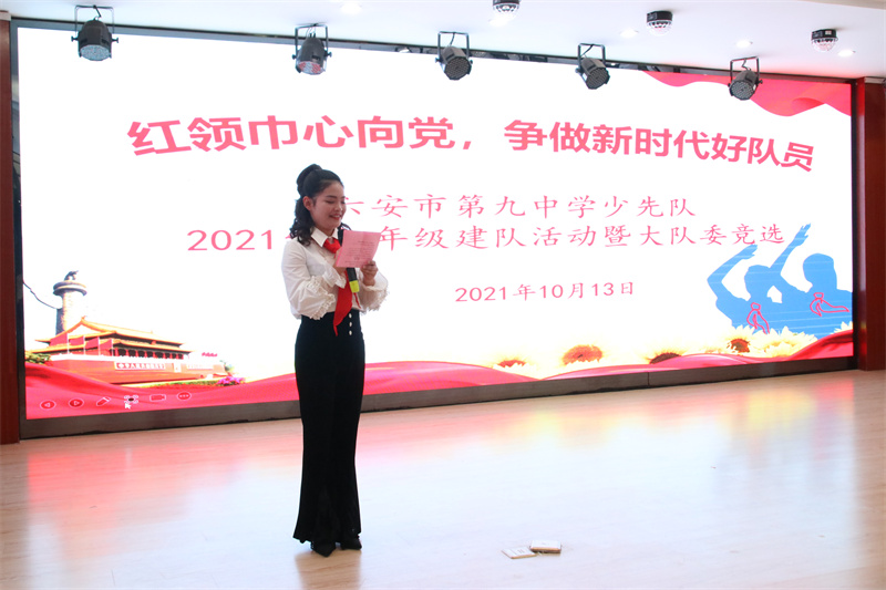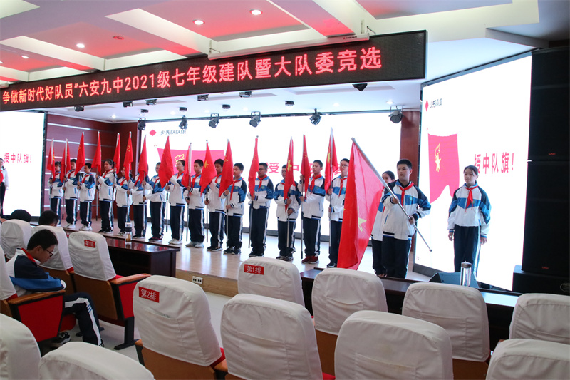 队旗飘动,梦想飞扬,为了继承和发扬中国少年先锋队的光荣传统,增强少先队员的光荣感、责任感和使命感,营造和谐、健康的校园文化氛围,10月13日下午,六安市第九中学举行2021级七年级建队仪式暨少先队新一届大队委竞选活动。