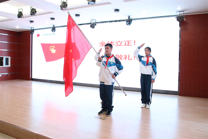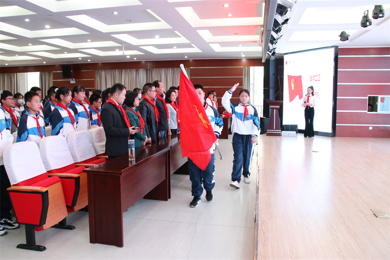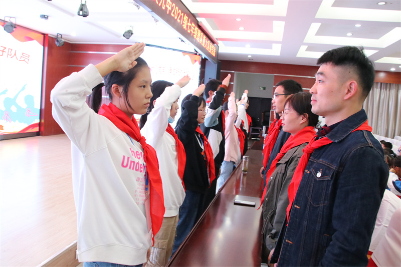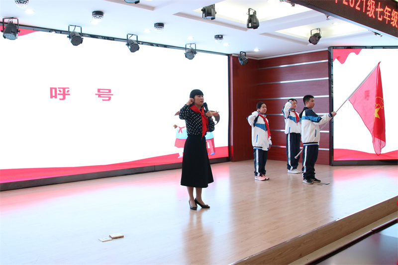 准备着,为共产主义事业而奋斗!时刻准备着!”大队辅导员王德玲老师带领全体队员呼号,七年级建队仪式在嘹亮坚定、铿锵有力的呼号声中圆满落幕。