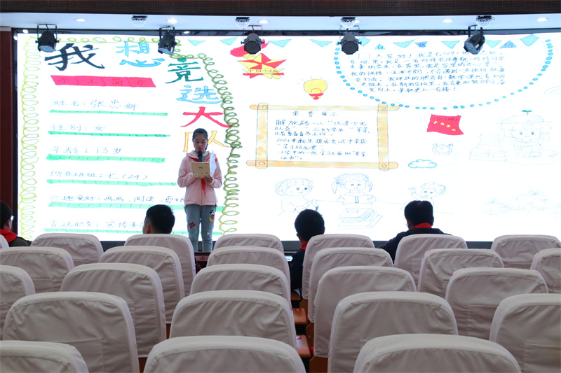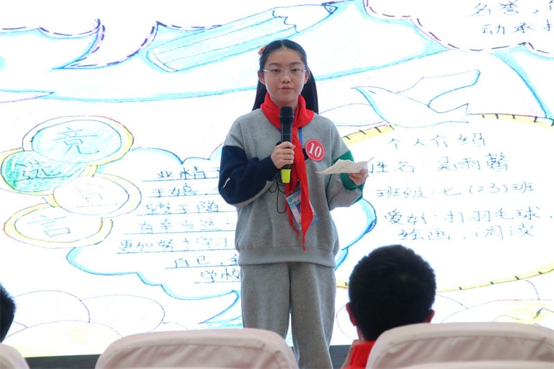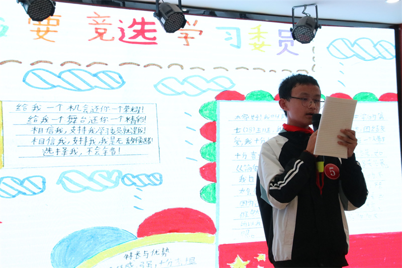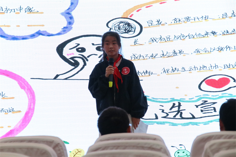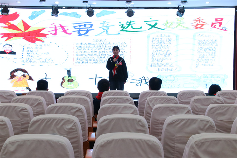 为了进一步加强学校少先队组织的建设,选出最优秀的少先队员担任大队委职务,促进学校少先队工作,真正实现“自己的活动自己搞,自己的阵地自己建,自己的事情自己管”,我校组织开展了少先队大队委竞选活动。经过各班推荐和校少工委初选,最终有15名候选人进入决赛,并进行竞选演讲和才艺展示。竞选演讲中,他们个个充满自信,以良好的心态、高涨的热情,自信地站在舞台上。他们或畅谈对大队委工作的看法,或畅想自己上岗后开展工作的新思路,或表达自己对大队委工作的热情和向往,声情并茂的演讲,赢得了在场队员们的阵阵掌声;他们各怀绝技,拉丁舞、竹笛、绘画、书法、歌曲、吉他等应有尽有,尽情地展示着自己的精彩。