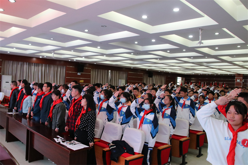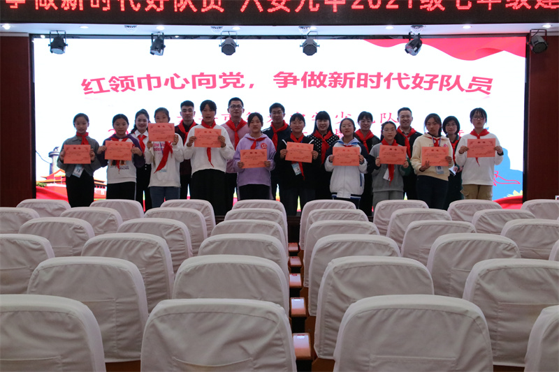 红心永向党,我辈当自强。相信六安九中新一届的大队委将会更加富有朝气、充满活力,能够更加积极地投身到学校少先队工作中去,为争做新时代好队干而不懈努力!(文/王胜利 图/查军柱)