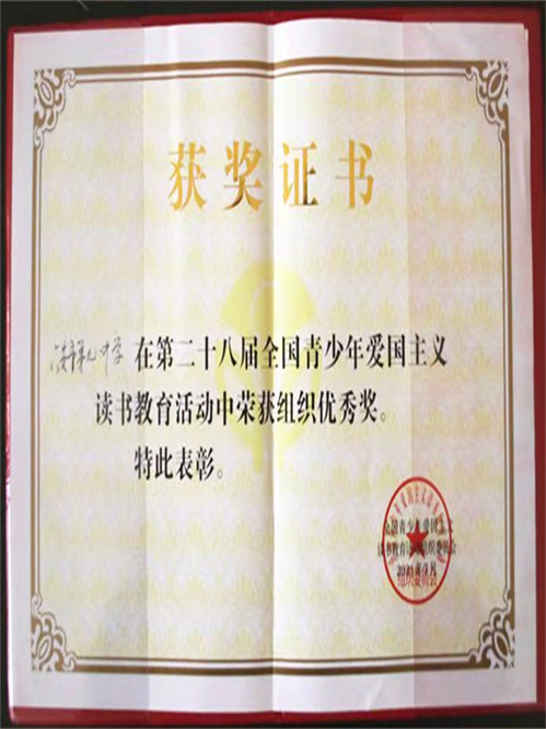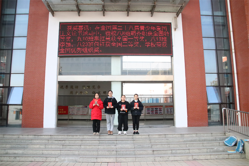 在以“百年光辉历程 全面建成小康”为主题的第28届全国青少年爱国主义读书教育活动中,六安市第九中学再创佳绩。其中,八(8)班胡齐帜同学荣获全国特等奖,九(10)班车红慧同学荣获全国一等奖,八(13)班李颖同学和八(23)班包钰同学荣获全国三等奖,学校再次荣获全国组织优秀奖。