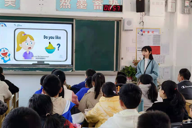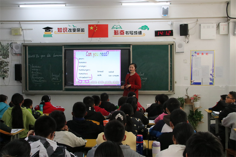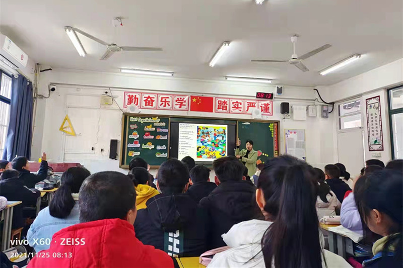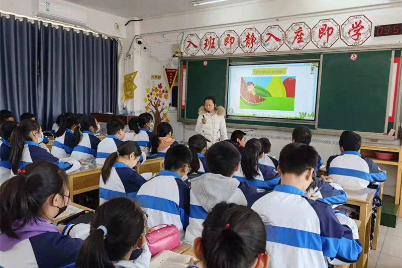 英语老师教学思路清晰,方法灵活多样,语言精炼,师生互动充分,课堂氛围活跃,亮点频现。