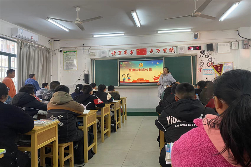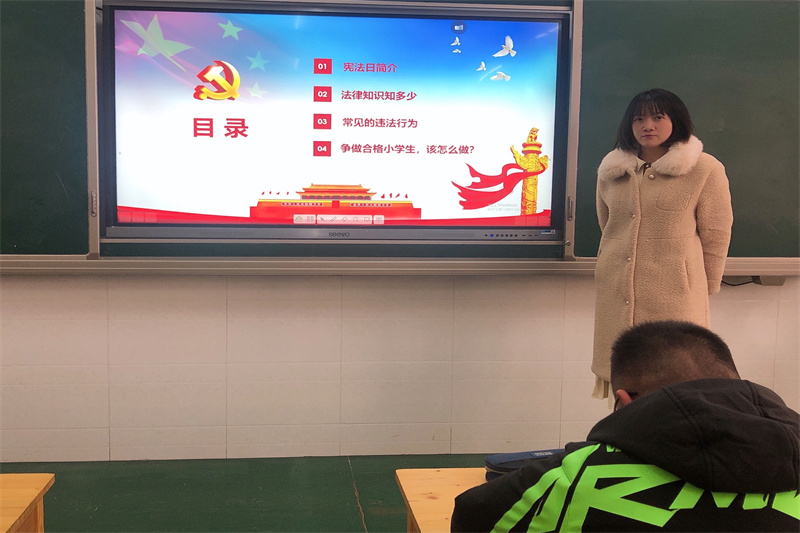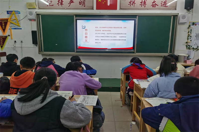 本周一开始,各班级开展了“弘扬宪法精神,推进依法治国”的主题班会。班会中,各班级通过放映PPT,学习了宪法的相关知识,了解了宪法的立法过程,明确了争做合格中学该怎么做;各班主题班会设置了“宪法知识竞猜”和“向宪法宣誓”环节,班主任带领同学们学习了习近平法治思想的重大意义,了解了习近平法治思想在全面依法治国中的指导地位,引领大家把宪法精神内植于心、外践于行,争做宪法小卫士,让美丽青春与法同行。