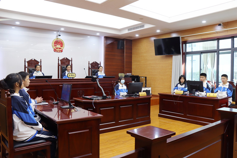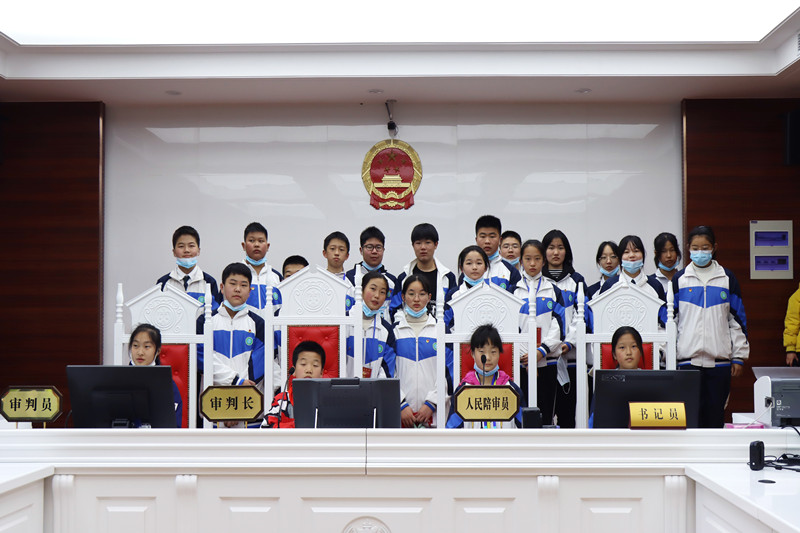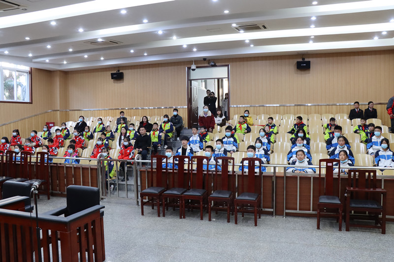 在第一法庭,同学们旁听了一起关于经济纠纷的民事案件的庭审过程,见证了原告、被告在法官主持和引导下,举证、质证的经过,零距离接触法庭审理案件,极大提高了对学法的兴趣。活动结束后,法官们向同学们分发了《中华人民共和国宪法》和《中华人民共和国民法典》。