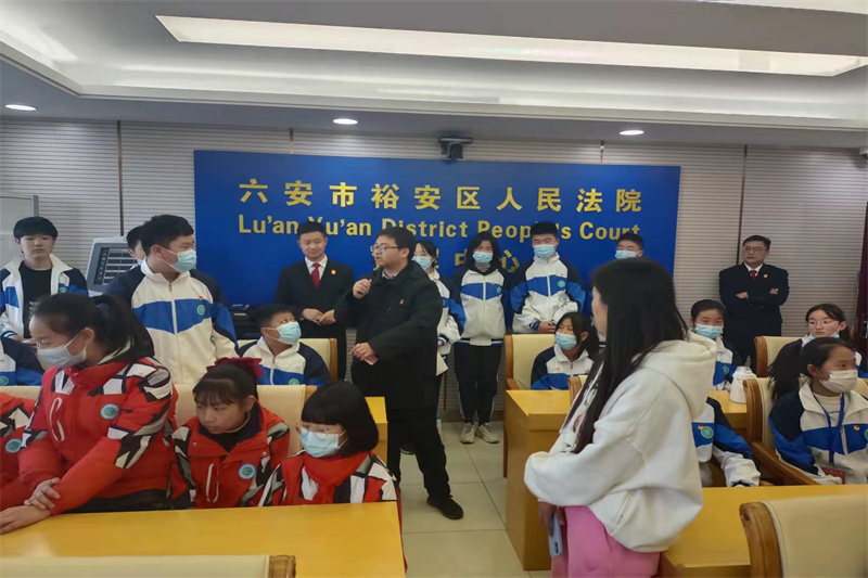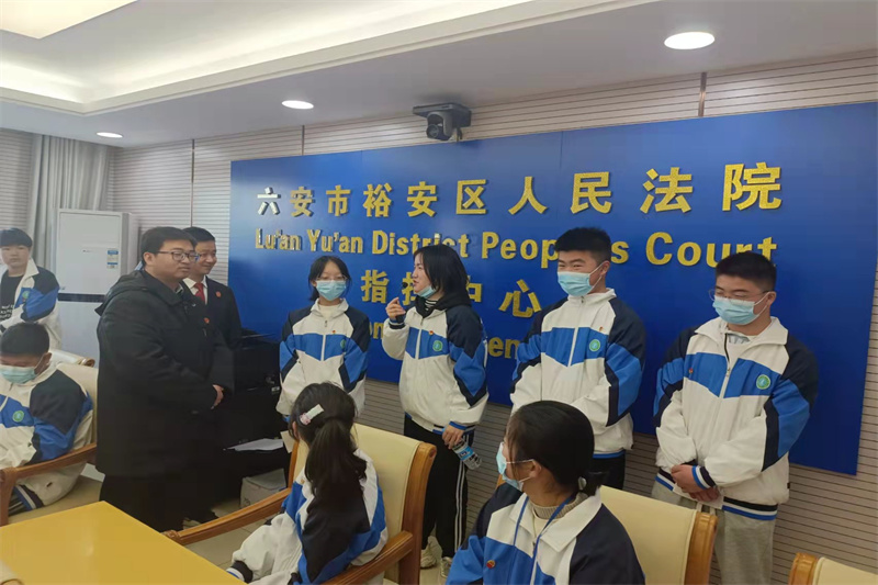 12月2日下午,六安九中组织学生代表走进裕安区人民法院参加宪法宣传周暨“法治护航成长”法院开放日活动,零距离感受司法关爱和法律尊严。在工作人员的引领下,同学们实地参观了诉讼服务中心、审判法庭、少年法庭、指挥中心等场地。