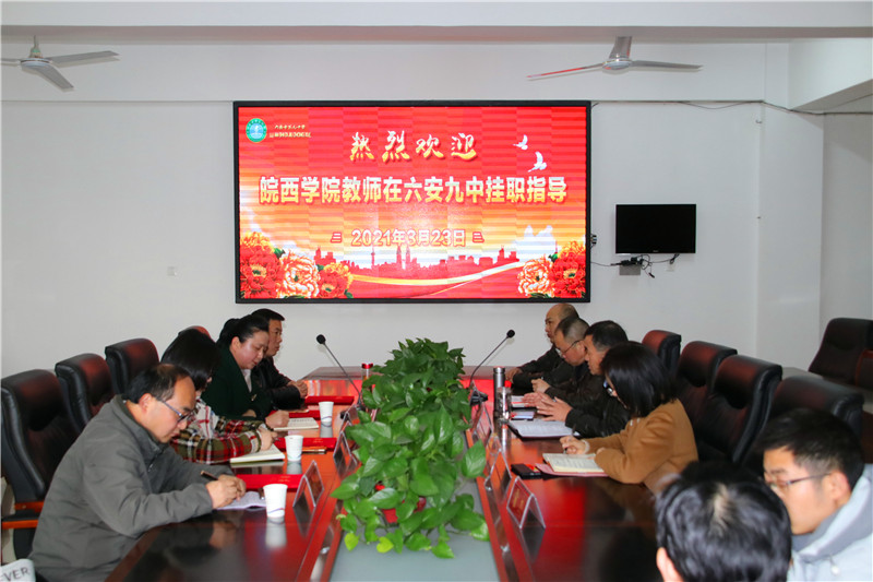 皖西学院派遣师范类专业教师到六安九中挂职锻炼是高校与基础教育合作的新型模式,必将引领六安九中的学科研究快速发展,推动六安九中教学科研向更高的层次和水平迈进。