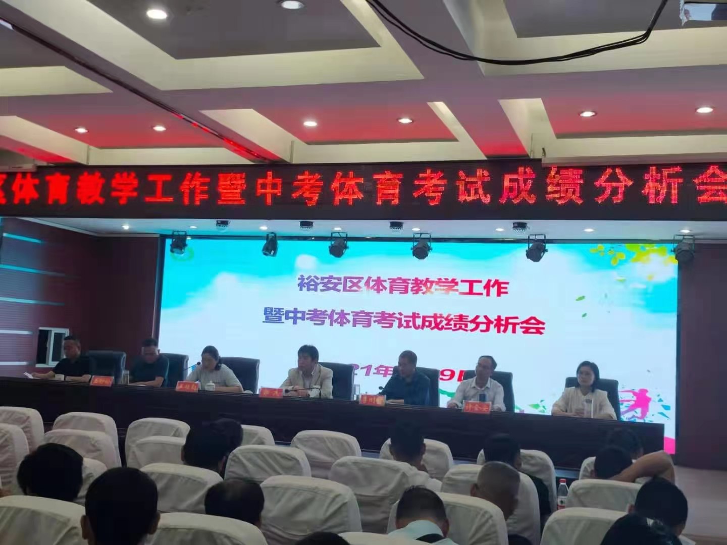 5月9日上午,裕安区体育教学工作暨2021年中考体育考试成绩分析会在六安九中学术报告厅举行。区委教育工委副书记、区教体局副局长郭杰,区委教育工委委员、区教体局副局长李刚祥、王桂勤,区教研室主任许全安,基教股股长王劲松,区教研室体育教研员朱增文,六安九中李艳校长出席会议。全区各中心学校、乡镇初中、区直属学校分管教学领导及各初中八、九年级体育教师参加了会议。会议由李刚祥副局长主持。