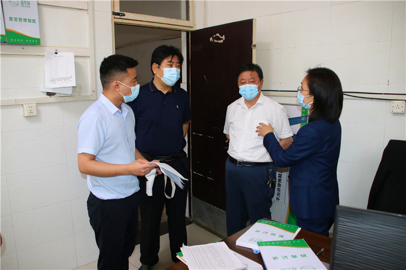 督察组一行实地查看了校园出入测温通道、隔离室、教室、食堂、防疫物资储备室等重点防疫场所。通过查阅台账、现场询问、听取汇报等方式,深入了解了学校疫情防控相关方面工作,特别是对师生健康管理、防控物资储备、应急处置流程、食堂卫生安全等情况进行了重点督查。