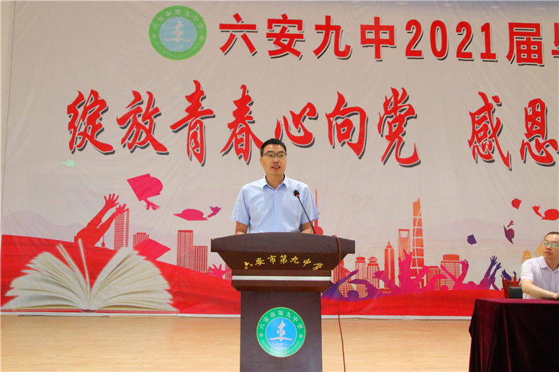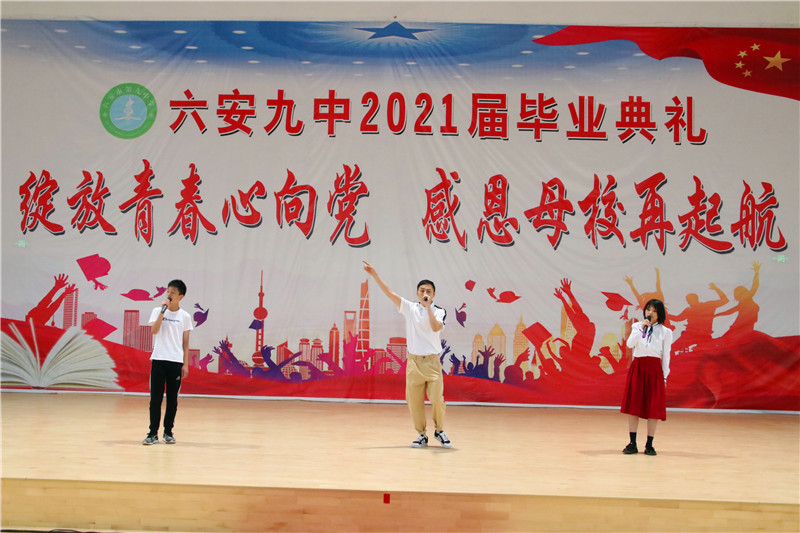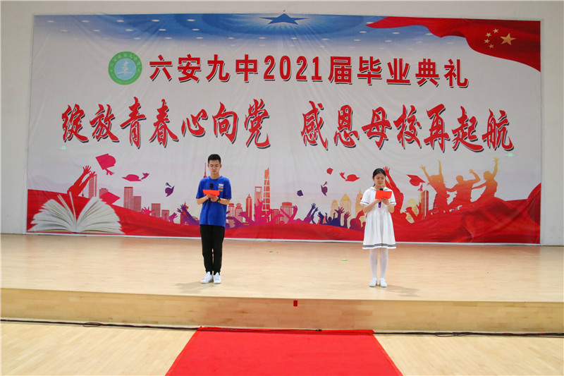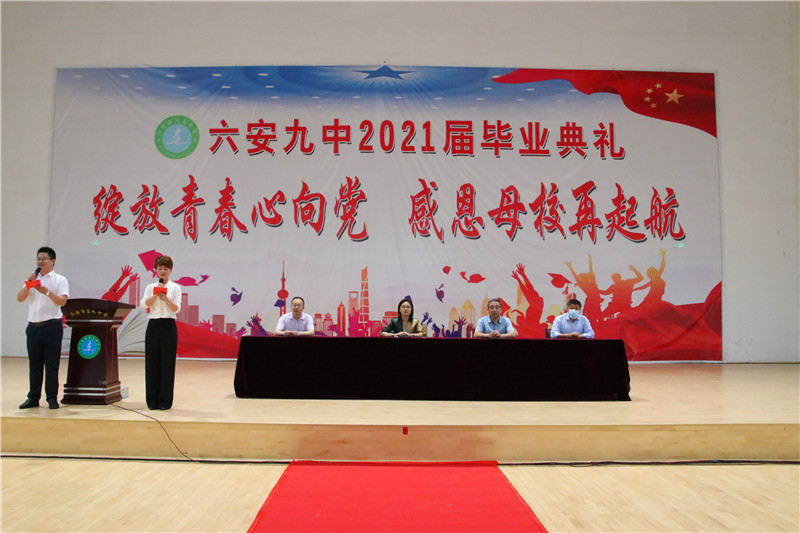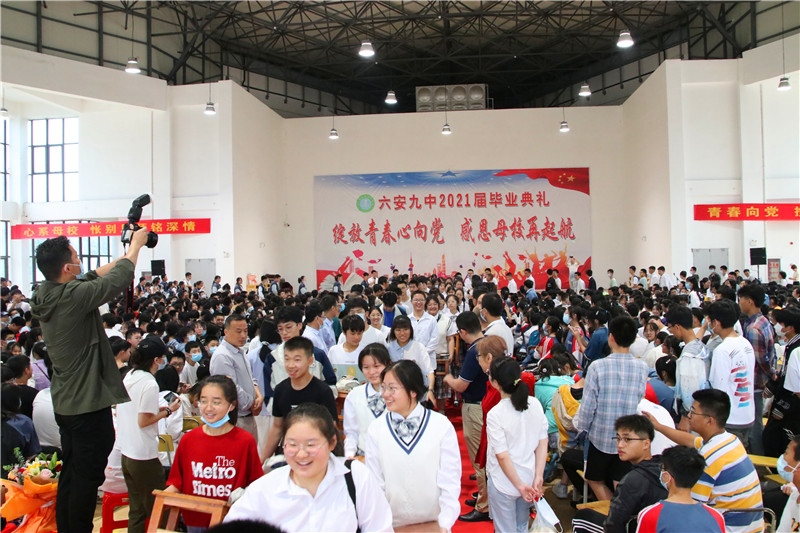 在这栀子花开、荷香梅熟的六月,毕业季悄然而至。为喜迎党的百年华诞,增强全体毕业班同学的使命感、责任感和仪式感,6月19日,六安九中在学校艺体馆,为2021届1788名初三毕业生举办了一场以“绽放青春心向党,感恩母校再起航”为主题的盛大的毕业典礼。全体毕业班师生、部分学生家长2000余人齐聚一堂,诉说着浓浓的情愫,畅想着美好的未来。整场典礼,牵挂与感恩一起交织,期望与祝福萦绕回响,责任和担当凝结汇聚。