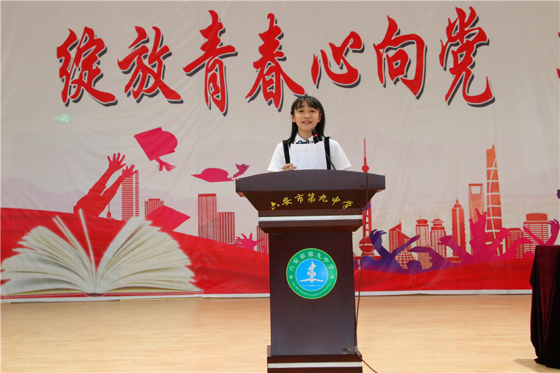 七、八年级的学弟学妹们用一首澎湃昂扬的诗歌朗诵----《青春中国》,既为九年级的学哥学姐们送上了真挚的祝福,也表达每一位九中学习立大志、明大德、成大才、担大任的雄心壮志。