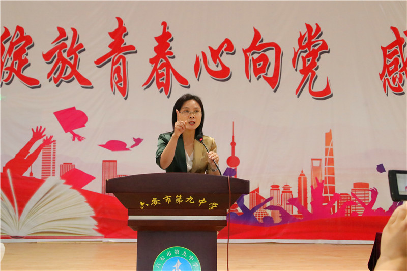少年回忆成长路,母校情深永难忘。毕业班学生代表陈菲阳在发言中,回顾了自己在九中三年的成长之路。九中三年,她磨炼了意志,锻炼了体格,增长了知识,收获了友谊。她感谢母校倾情的教育和老师们精心的培养,并祝愿母校桃李芬芳,明天更辉煌。陈菲阳同学的发言,激情澎湃,豪情满怀,道出了对母校的感激与依恋,展现了在学校“培养合格的人,塑造特长的才”的教育理念培养下的九中学子别样的风采。