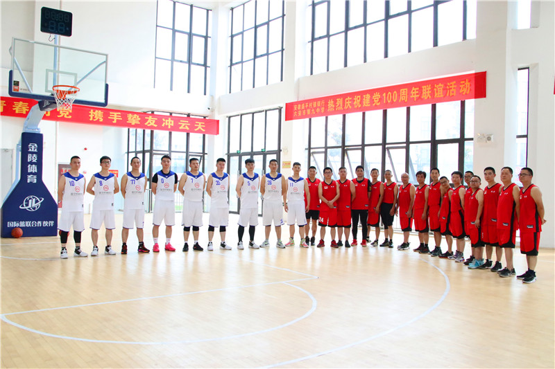 下午三时许,校教师篮球队队员们穿着一身“中国红”,排着整齐的队伍来到校艺体馆,开始了适应性训练。四时许,我们的对手----安徽裕安盛平村镇银行的篮球队员如约而至。两队球员热情地握手、拥抱,畅谈着我们党百年的艰辛历程和取得的伟大成就,深深地感悟到党的伟大和荣光,对党的感激和热爱之情油然而生。
