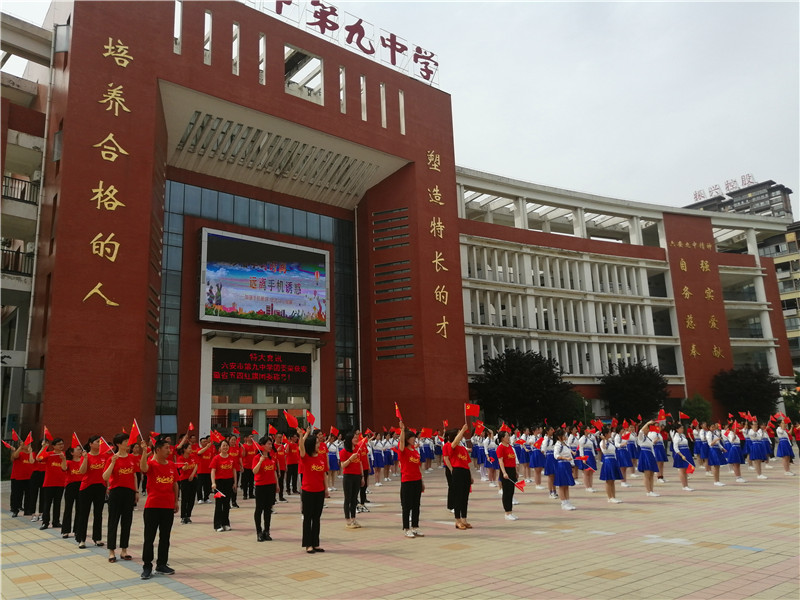 全校5000余名师生齐上阵,选取了8大场景、拍摄了500多个镜头,从筹备、排演、拍录、剪辑到最终发布,历经近一个月的时间。我校通过红歌传唱,给全体师生上了一堂生动活泼、意义非凡的爱党、爱国教育课。高亢激昂的歌声,让红色的雨露浸润心田,表达了九中师生们颂党恩、感党情的赤诚之心和听党话、跟党走的坚定决心,极大地激发了九中师生爱党、爱国的诚挚情怀。我校此项快闪节目经《人民日报》新媒体平台“人民号”发布推出,当天的点击量就达27万余人次,得到了广泛的社会关注。