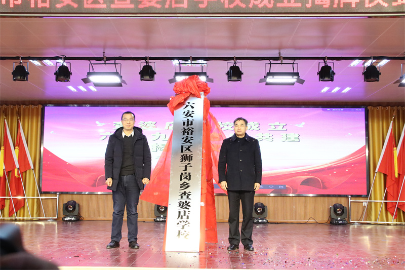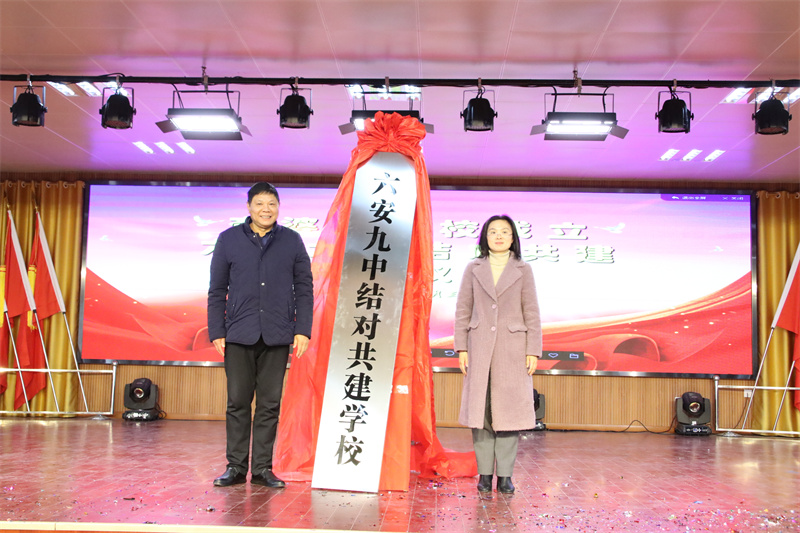 随后,李胜和查大武共同为查婆店学校成立揭牌;李艳和何从军一起为六安九中结对共建学校揭牌。