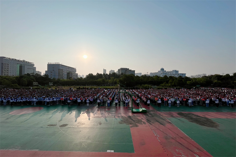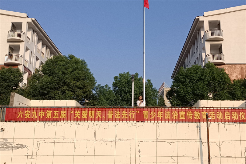 金秋送爽,丹桂飘香,告别了炎热的暑夏,清凉秋天向我们走来。当清晨的第一缕阳光洒进校园的时候,六安九中全体师生齐聚操场,隆重举行2022年秋学期第一次升旗仪式。团委书记王德玲主持升旗仪式。