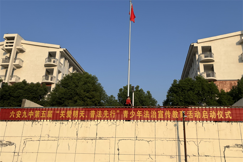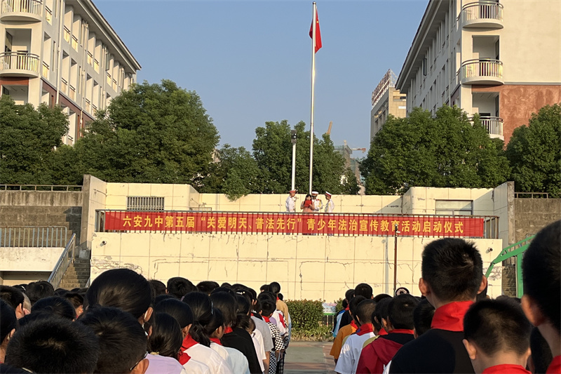 李艳校长在新学期第一次升旗仪式上发表讲话。首先,她对七年级新同学们表示了热烈的欢迎,并对同学们在军训和升旗仪式中能够遵守纪律、有序入场、精神饱满给予了充分的肯定。她希望,全体同学在新的学期里要积极向上,奋勇争先,努力成为一名德才兼备、品学兼优的好学生,为班级争光,为梦想拼搏。最后,李校长动员广大青少年学生要提高学法、知法、守法、用法的意识,并隆重宣布六安九中第五届“关爱明天,普法先行”青少年法治宣传教育活动正式启动。