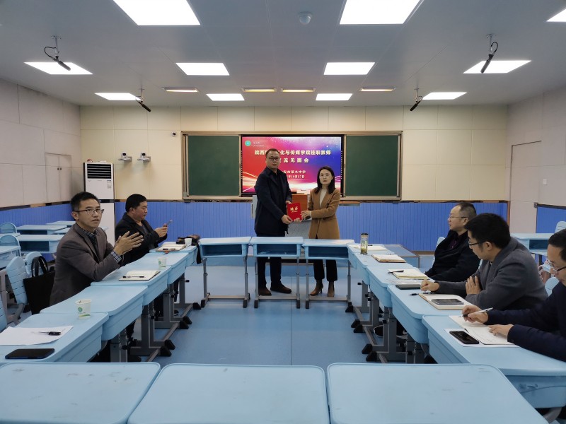 会议伊始,李艳代表学校对皖西学院文化与传媒学院领导一行的到来表示欢迎,并为挂职教师仝正涛颁发聘任证书。