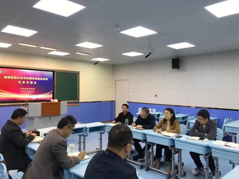皖西学院文化与传媒学院派教师到六安九中进行为期一年的挂职锻炼。10月27日,六安九中召开挂职教师交流见面会。六安九中校长李艳主持见面会。校领导霍朝晖、刘伦胜、查军柱和语文教研组组长刘青山参加会议。