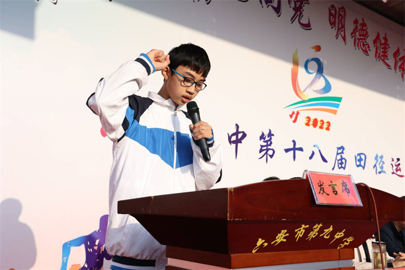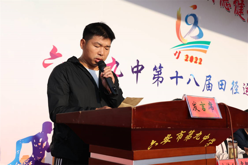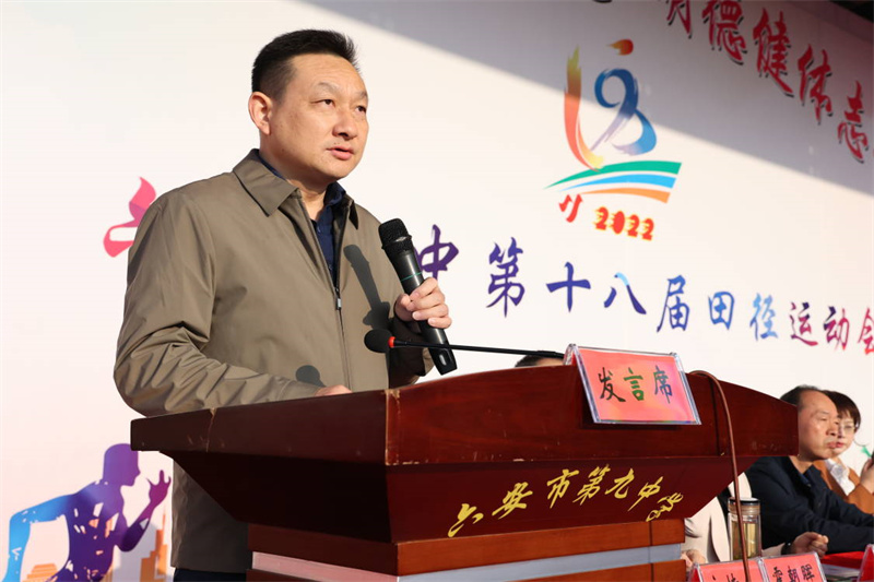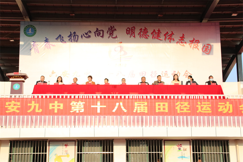 盛会凝心永跟党,青春激扬号角响。在全国上下学习贯彻党的二十大精神热潮里,在团结奋进、和谐友爱的喜庆氛围中,10月31日,六安九中隆重举行校第十八届田径运动会。全校6700余名师生齐聚运动场,用青春的活力和奋进的力量,吹响了勇担新使命、建功新征程的集结号。区人大党组书记、主任王雷,区人大党组副书记、副主任刘挺,区政协副主席陶晓婉,区委教育工委书记、区教体局局长王永益,区妇联主席李祝红,团区委书记管娇娇,区委教育工委委员江兴国,区委教育工委委员、区教体局副局长王桂勤,区疾控中心主任顾君等领导,应邀出席开幕式。