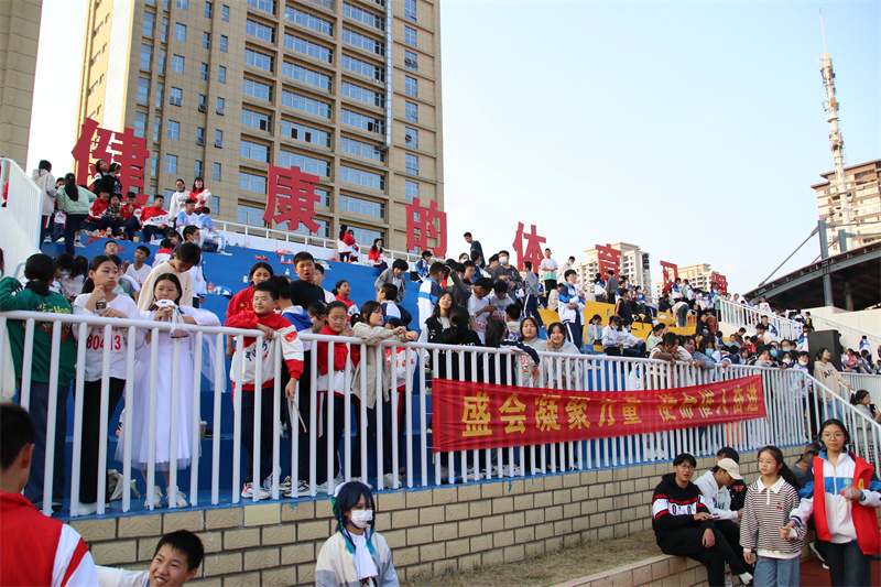 赛场上,运动员顽强拼搏、敢于超越,充分展示出新时代少年奋发向上的精神风貌。赛场边,同学们欢呼雀跃,激情飞扬。热情的加油助威、精彩的宣传报道、干净整洁的“大本营”,无不尽显九中少年尚德明礼的时代新风;公正裁决的裁判、用心用情的班主任们、坚守岗位的后勤人员、一丝不苟的志愿者们,无不展现了九中人的奉献担当的胸怀情愫。