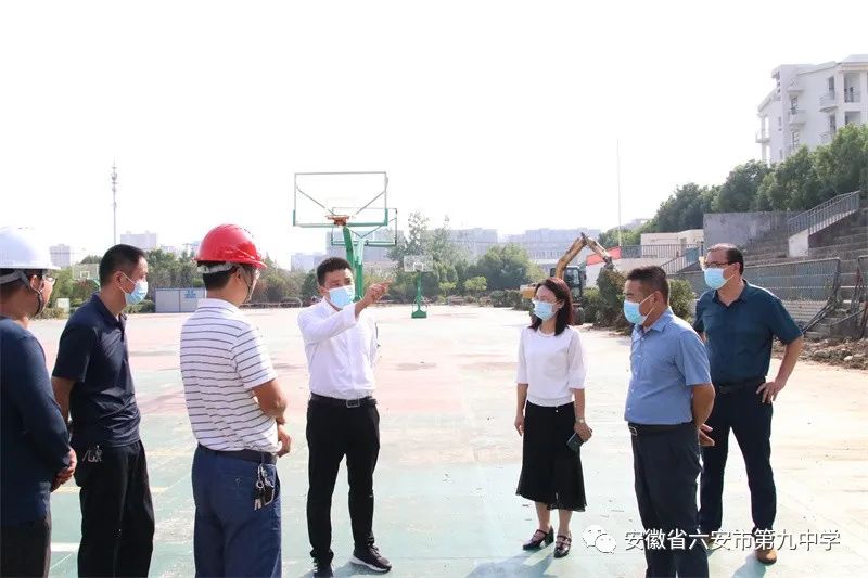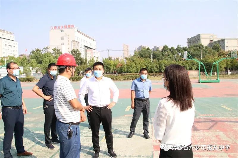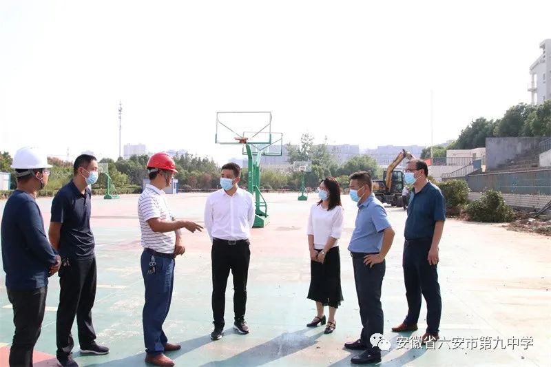 9月30日下午,裕安区人民政府副区长任其平莅临六安九中调研新建教学楼建设进展情况,区委教育工委委员、副局长申祥宏陪同调研。