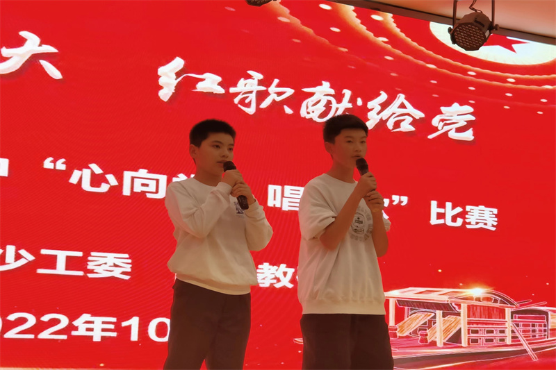 10 月14日下午,在决赛现场,小选手们精神饱满、心情澎湃,演唱的歌曲形式多样、各具特色。小选手们用铿锵有力的声音,共同唱响红色旋律,“声”情告白祖国,在党的二十大即将召开之际,向伟大的祖国、伟大的党献上最诚挚的礼赞。